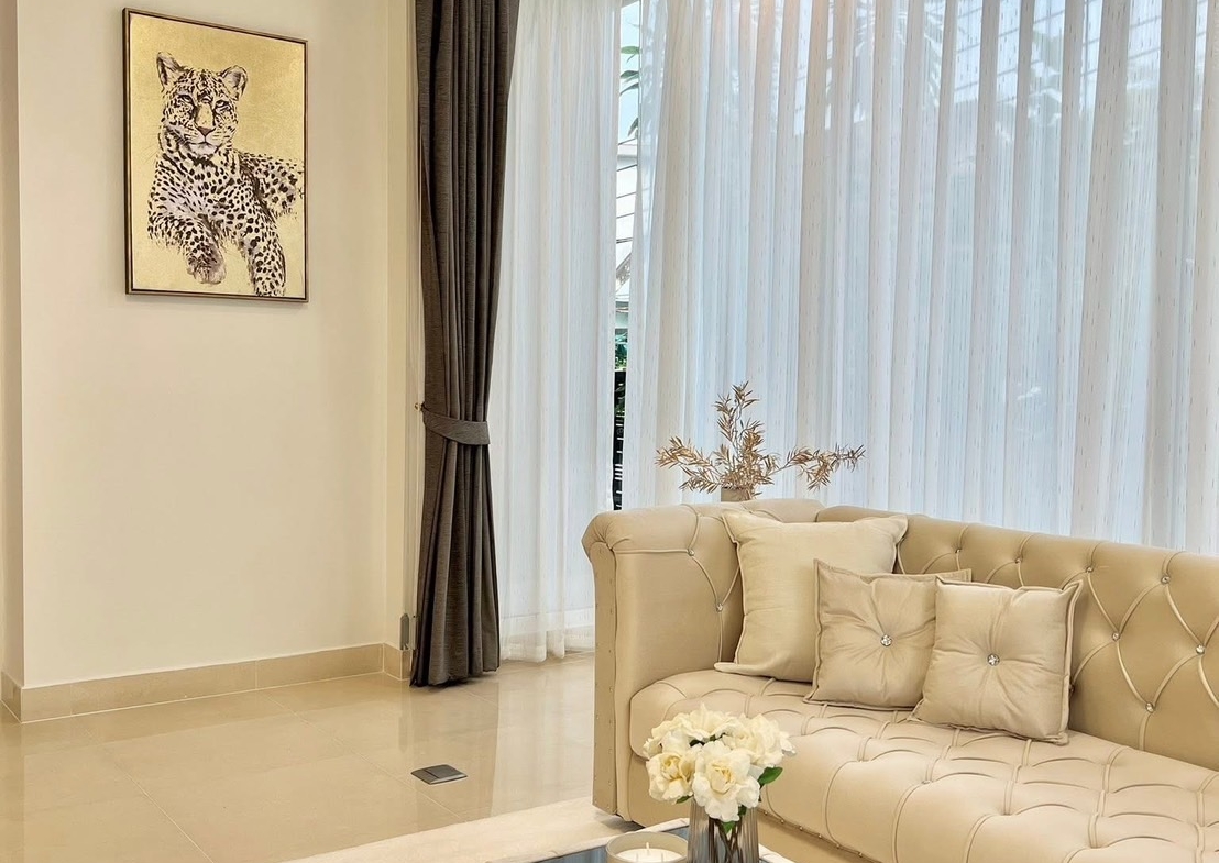 • ห้องนั่งเล่นหรูหรา เพดานสูง