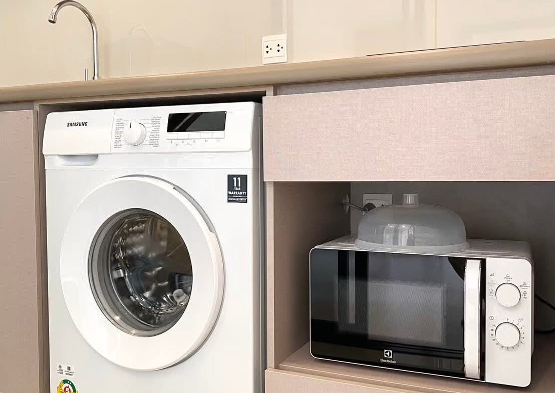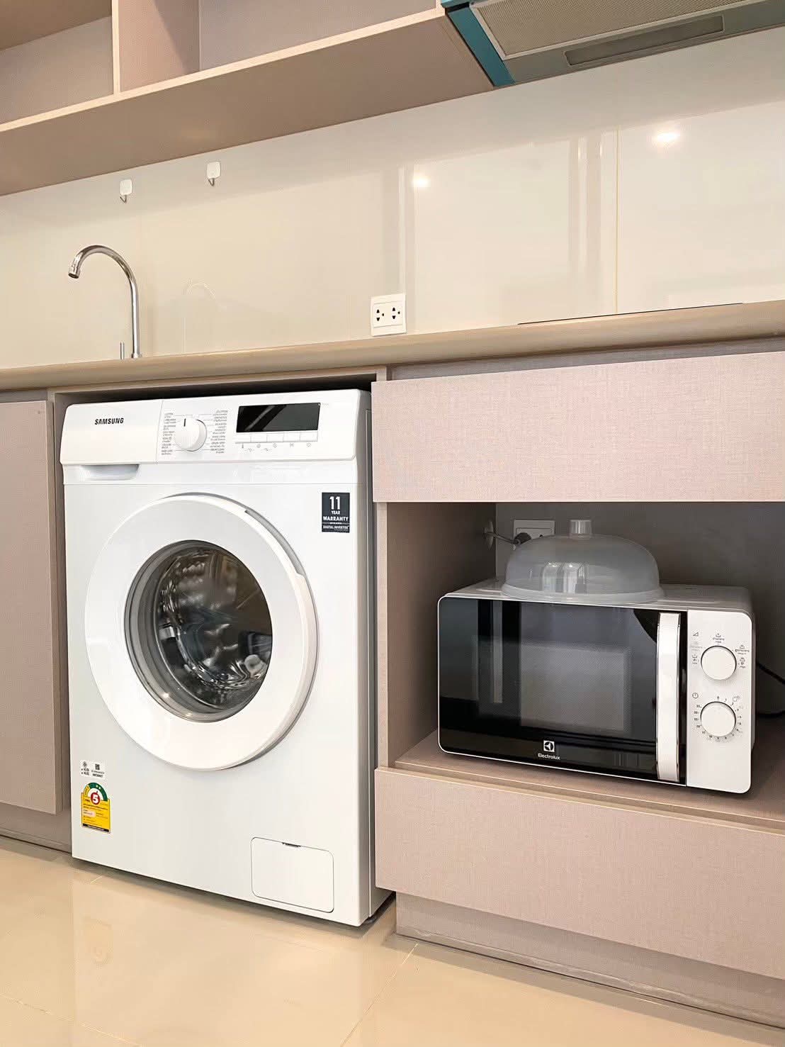 • ชุดครัวบิ้วอิน + ซิงค์น้ำ + เตาไฟฟ้าเซรามิค + ฮูดดูดอากาศ + จานชามช้อนส้อม