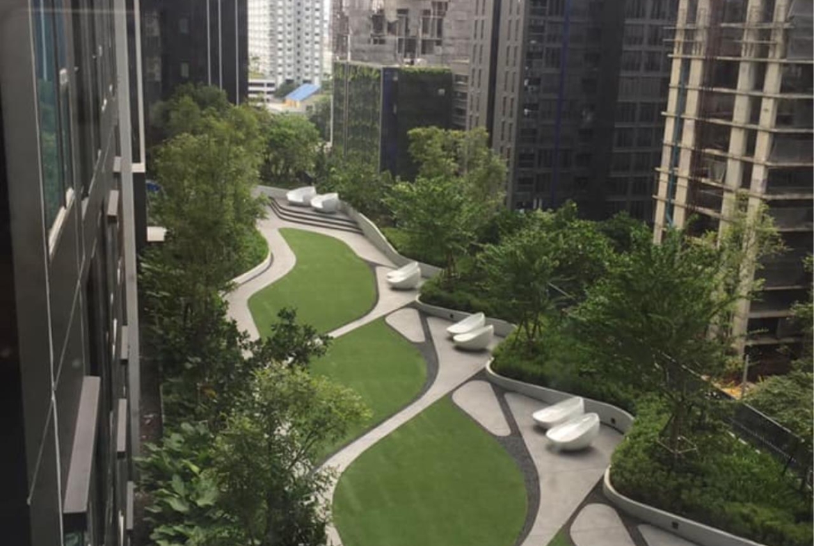 Studio ขนาด 27.6 ตร.ม. ทิศเหนือ วิวสวนลอยฟ้า หัวนอนทิศตะวันออกราคาเช่า 17,000 บาท/เดือน (คุยกันได้)