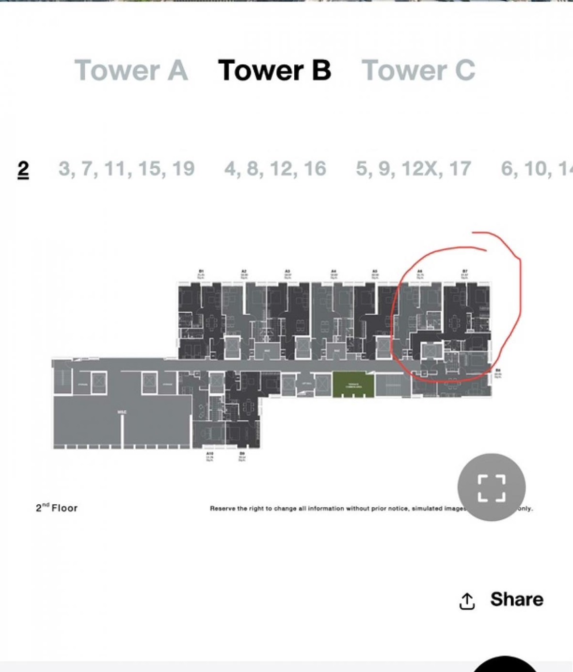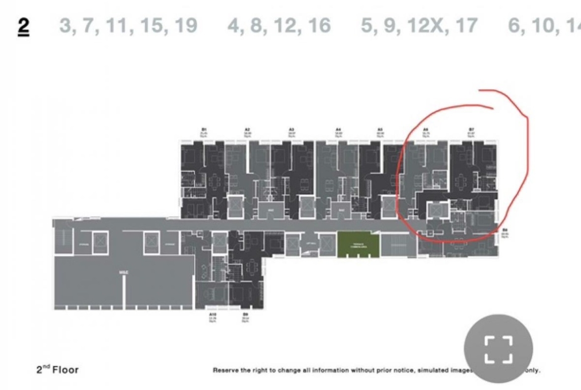 ห้องอยู่ที่ชั้น 18 ตึก B Corner Unit Type B7 ขนาด 81.87 ตารางเมตร