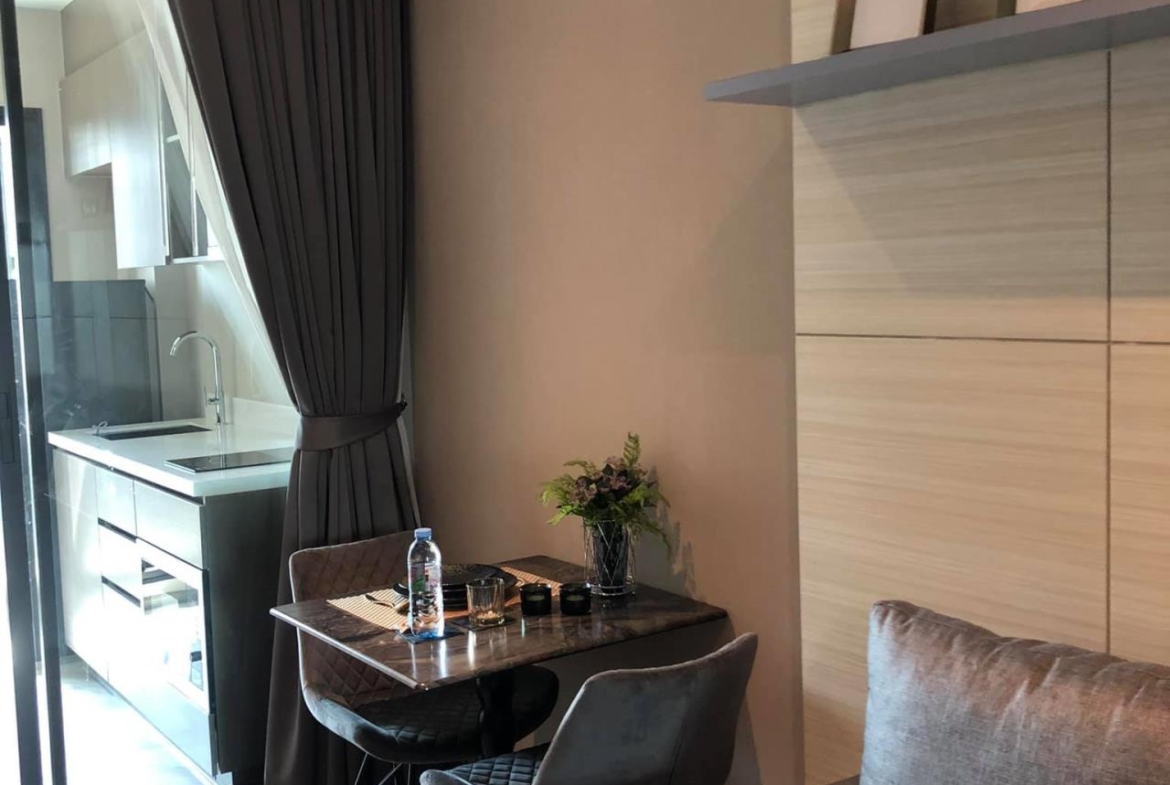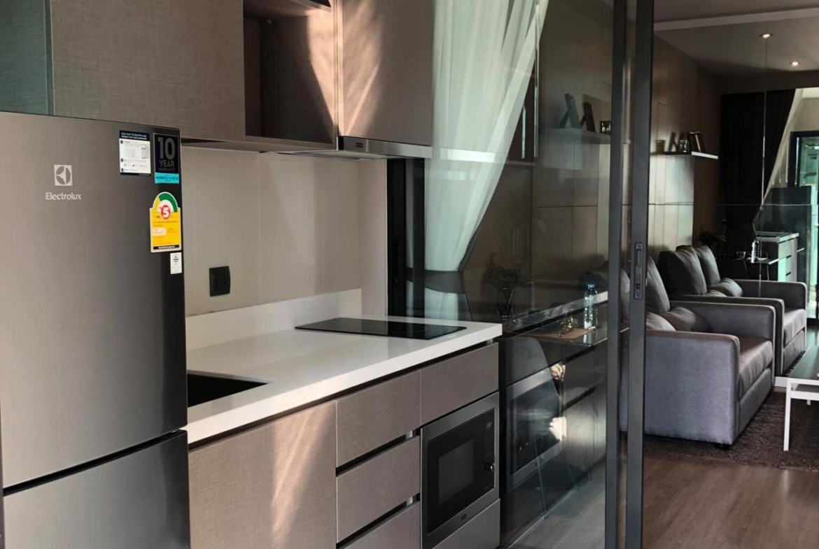 Rhythm Ekamai Condominium New condo for rent, fully furnished and ready to move in. area 35 sq.m, 21th Floor , 1 Bedroom, 1 Bathroom,1 Living room and kitchen The room was clean and comfortable. Classic black and white grey decoration room with electrical appliances (1 year lease contract ) 1 month advance payment, 2 months room insurance