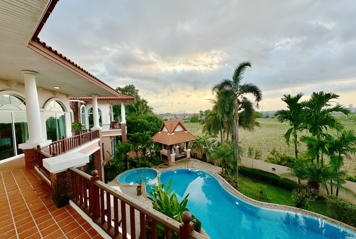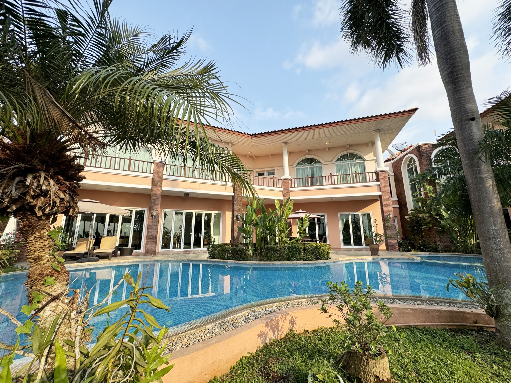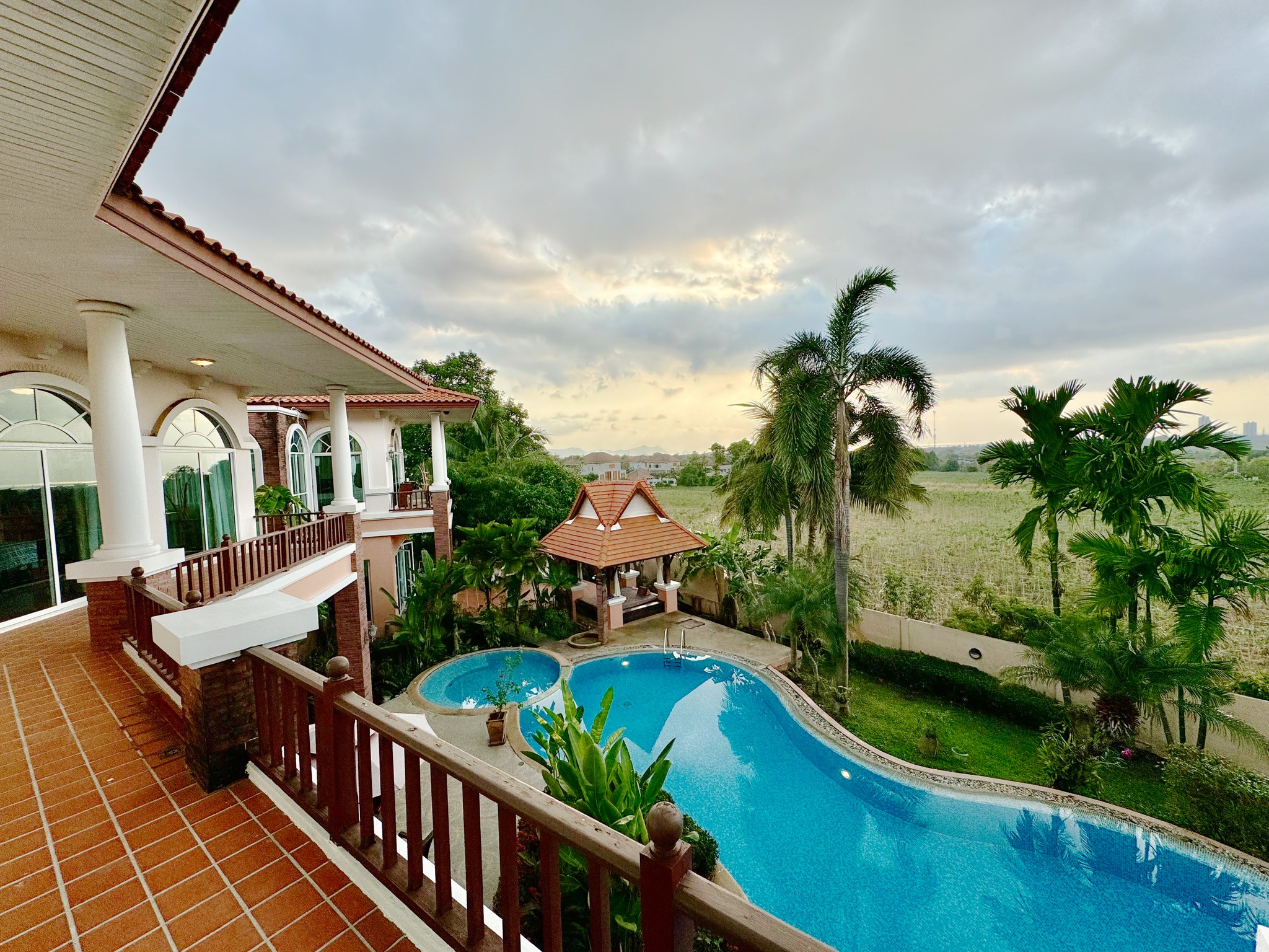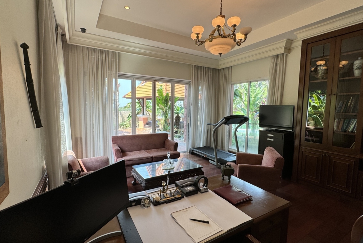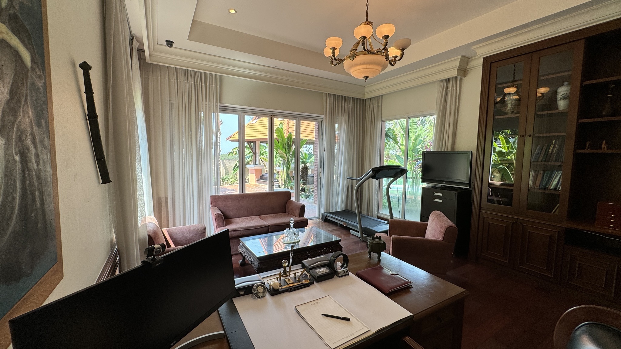 Welcome to your very own private resort! Located in the prestigious Phoenix Gold Golf and Country Club, this large residence has everything you could ask for in a home – large pool, jacuzzi, wine cellar, aviary, tropical ponds, 4 spacious bedrooms, a study, three ensuite bathrooms (plus an additional guest toilet), a Sala Thai, a large aquarium, and even a private elevator to the Master bedroom. Designed by a renowned hotel architect, the build quality of this home is outstanding. The lush gardens, designed by a professor of landscape architecture, provide every room of the house with beautiful views into your very own tropical paradise. Homes built to this high standard are rarely available so don’t miss out