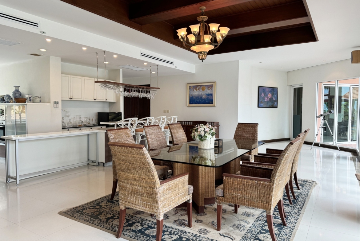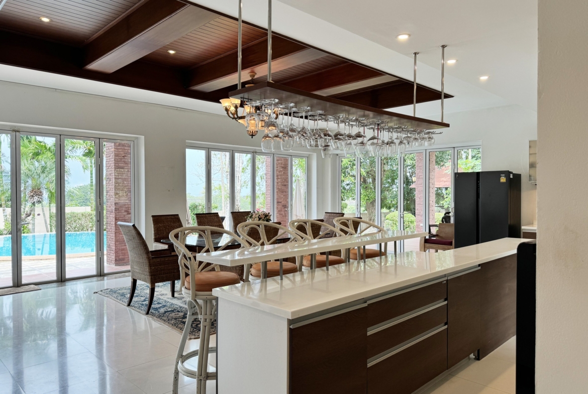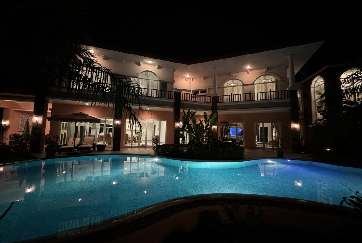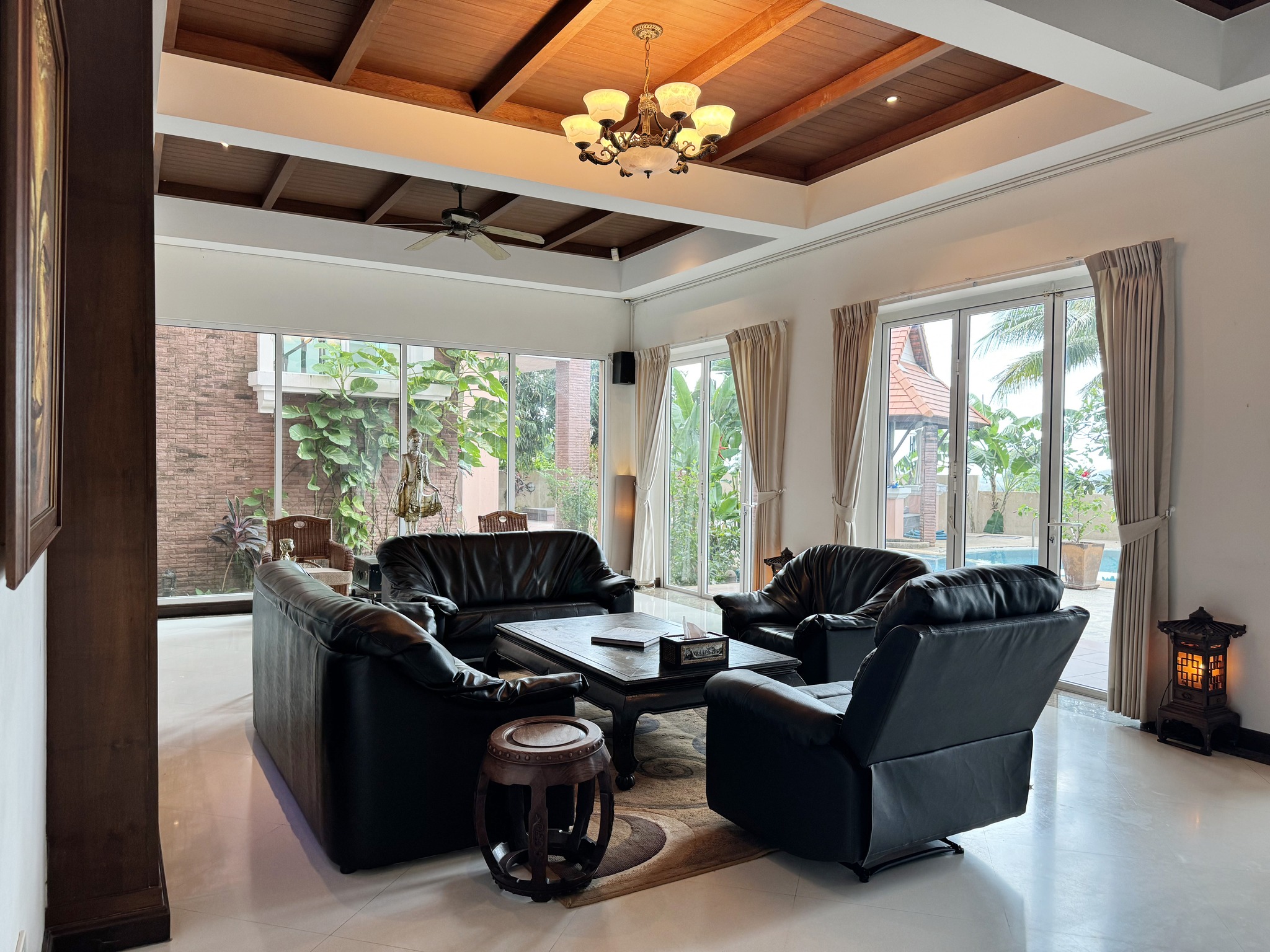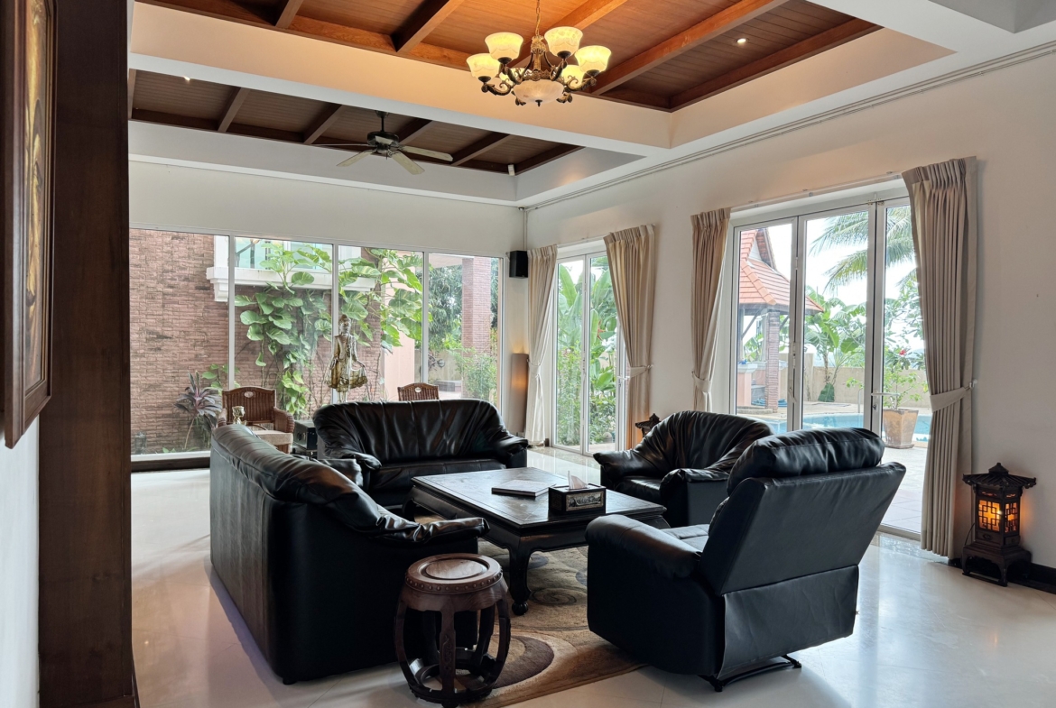 Welcome to your very own private resort! Located in the prestigious Phoenix Gold Golf and Country Club, this large residence has everything you could ask for in a home – large pool, jacuzzi, wine cellar, aviary, tropical ponds, 4 spacious bedrooms, a study, three ensuite bathrooms (plus an additional guest toilet), a Sala Thai, a large aquarium, and even a private elevator to the Master bedroom. Designed by a renowned hotel architect, the build quality of this home is outstanding. The lush gardens, designed by a professor of landscape architecture, provide every room of the house with beautiful views into your very own tropical paradise. Homes built to this high standard are rarely available so don’t miss out