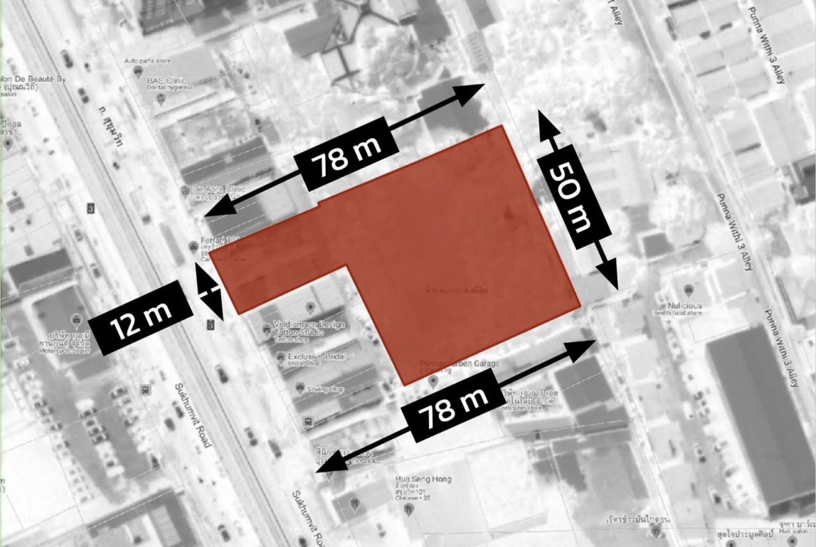 ที่ดินแปลงสวย ติดถนนสุขุมวิท – ห่าง BTS สุขุมวิท 101 เพียง 80 ม.