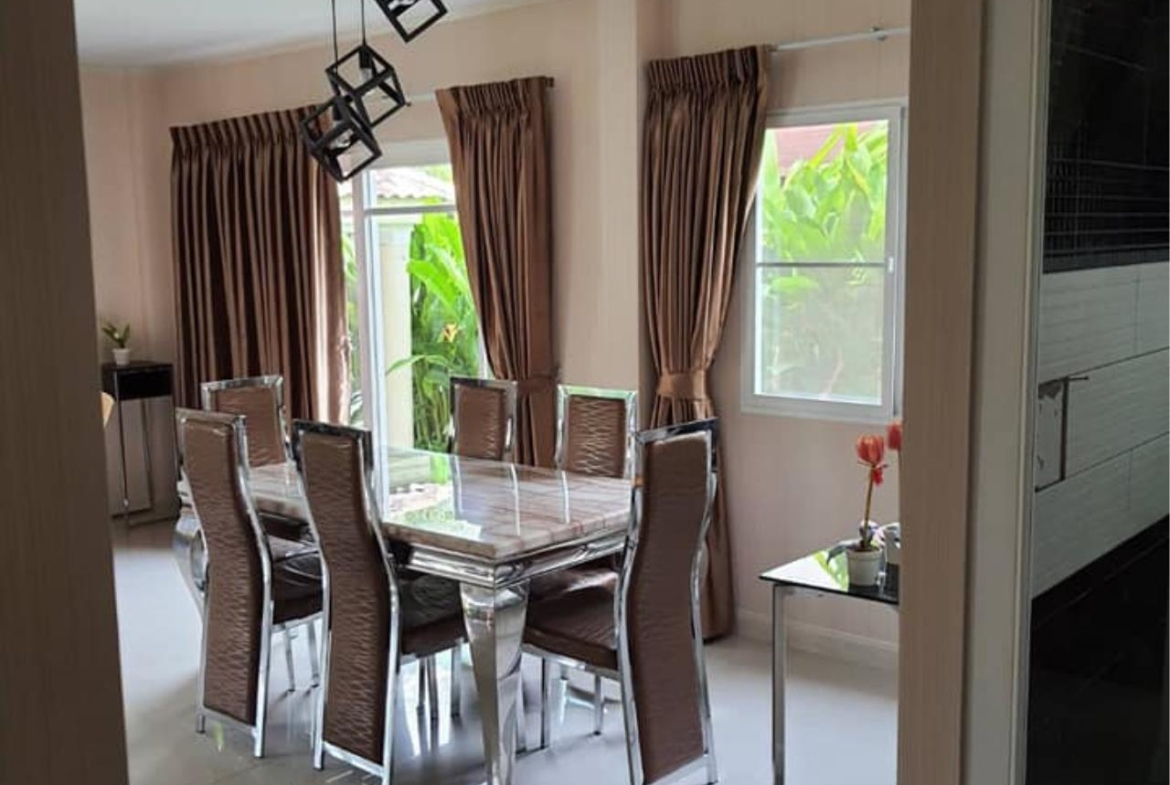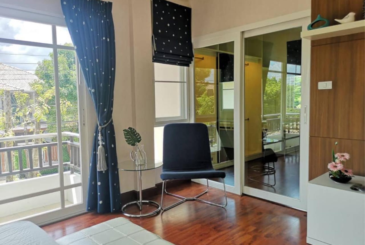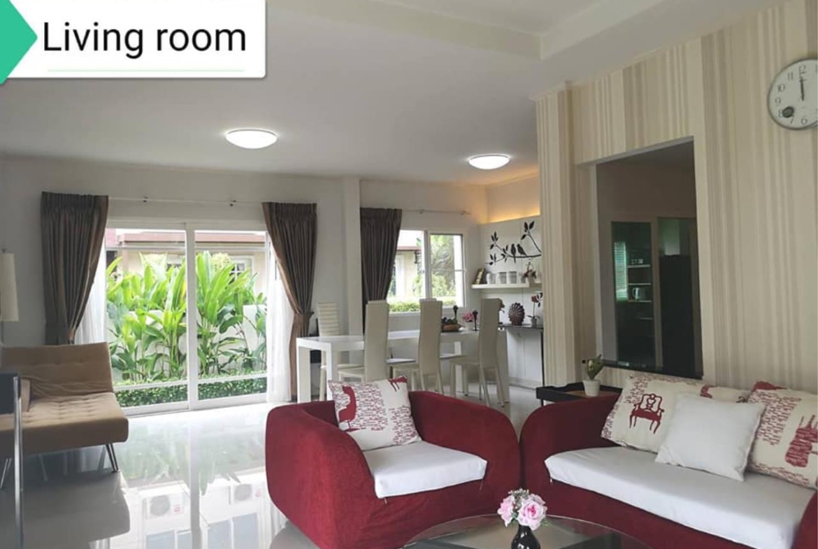 The project new-model houses with area 80 sq.wah Usable area 300 sq.m. 4 bedrooms, 3 bathrooms with air conditioning, TV, refrigerator and full amenities.