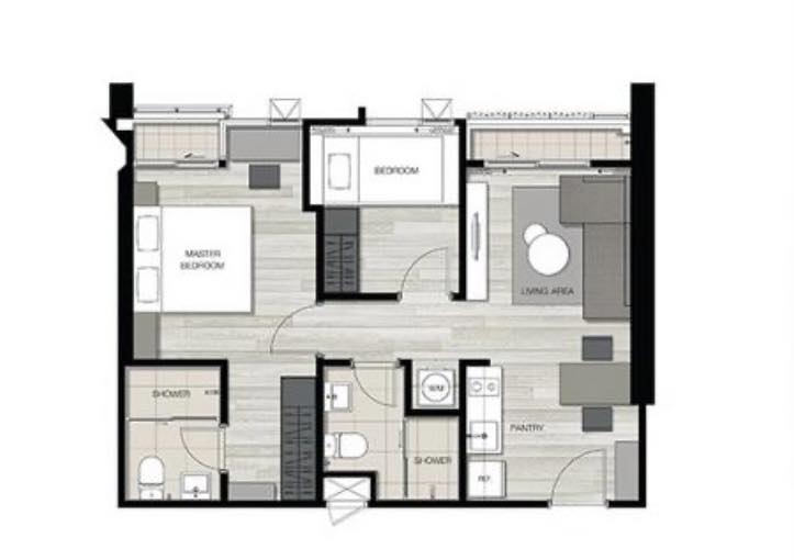 ห้องมุม 2ห้องนอน 2ห้องน้ำ
