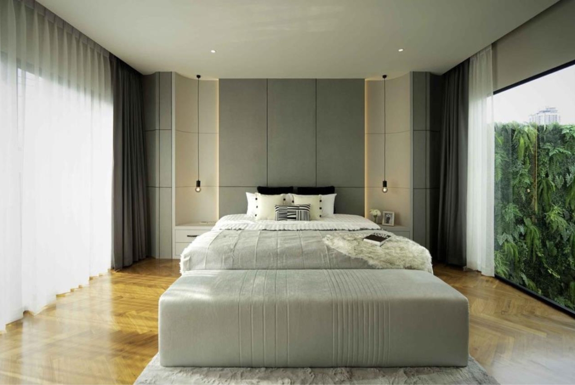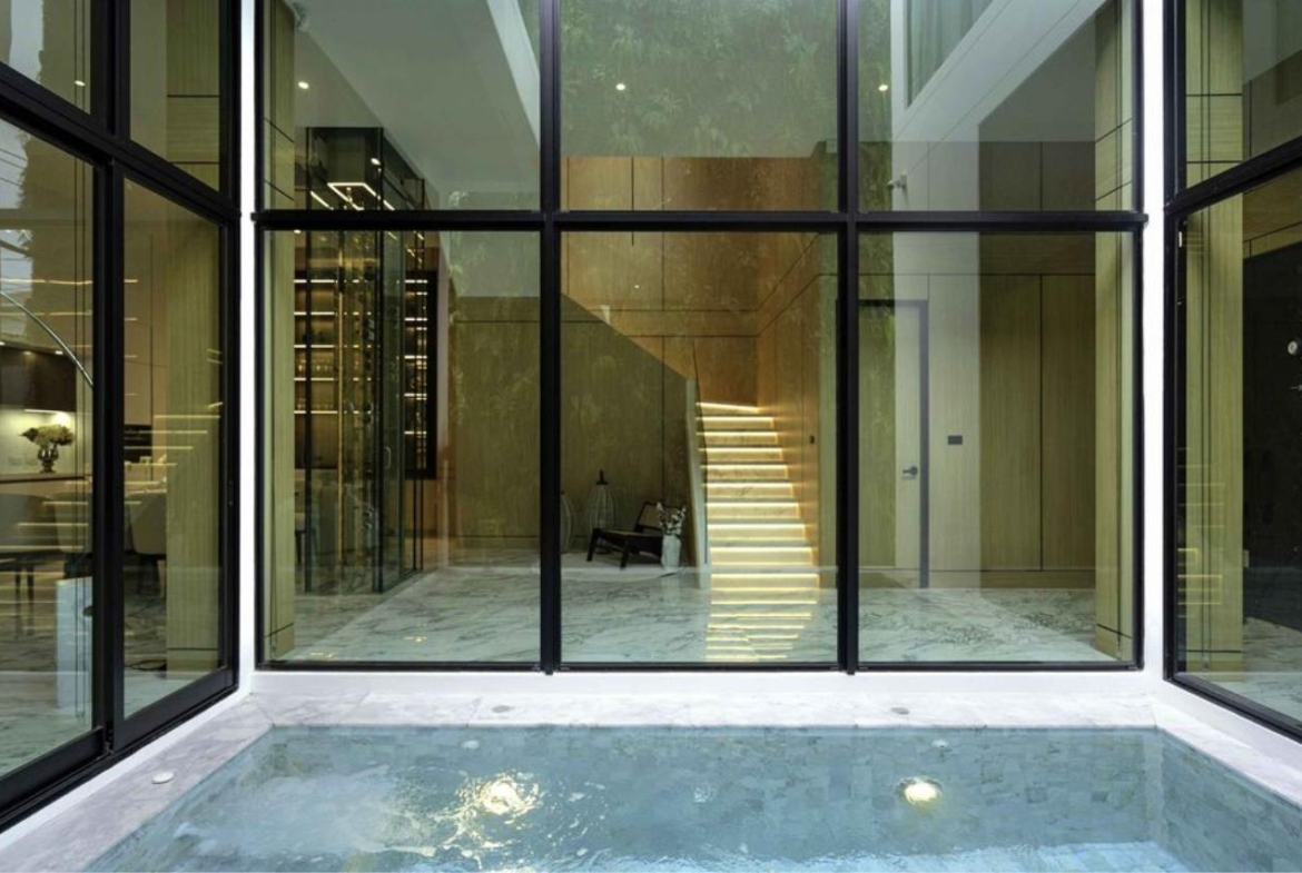 A luxury design house with modern Style. 3 stories with rooftop garden. Fully furnished with electric appliances, more than 550 Sq.m. usable space in 55 Sq.wah of land.