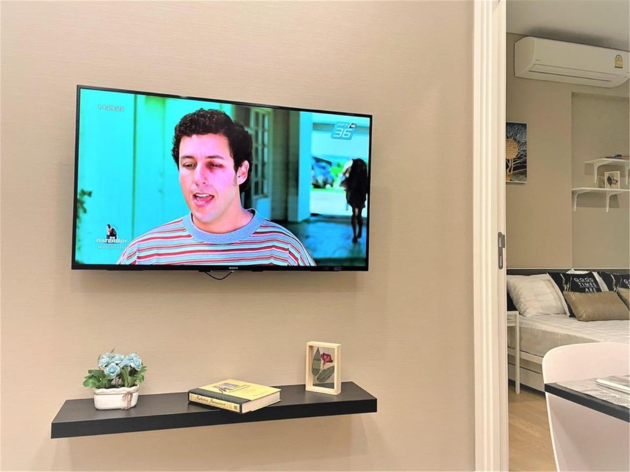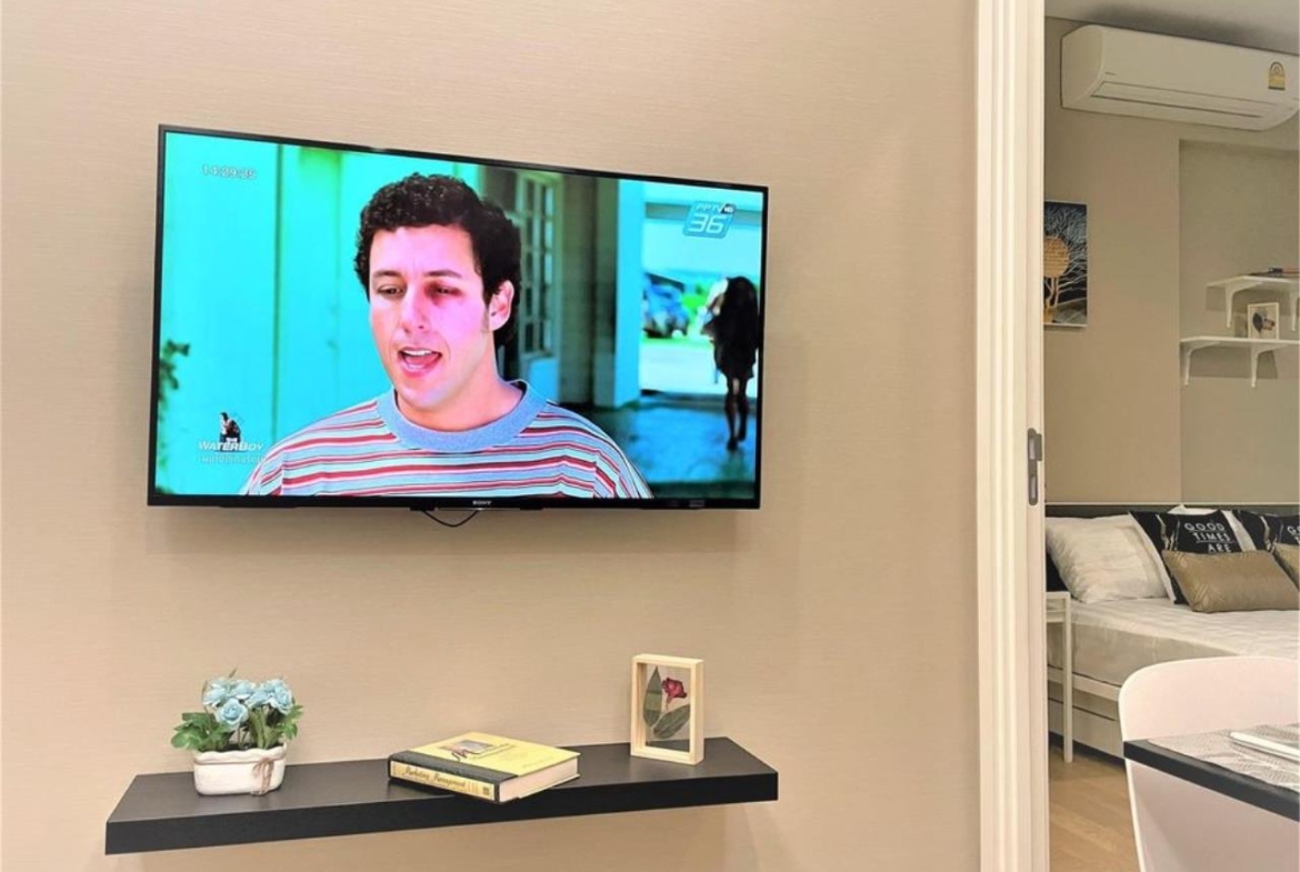 ห้องใหม่ เพดานสูง 2.9 ม. ผนังวอลเปเปอร์ทั้งห้อง กระจกติดฟิล์มกรองแสงกันความร้อน ห้องเย็นสบาย ตบแต่งสวย เฟอร์นิเจอร์ครบ พร้อมอยู่